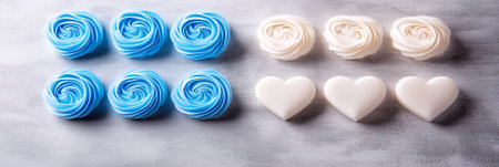 Sweet Delicate Blue White Rose Meringues Heart Shaped Candy food love gift cute sugar cream treat