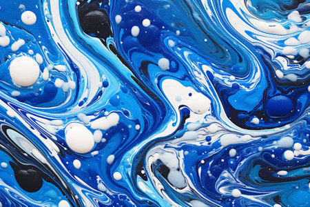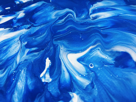 Abstract background of acrylic paint in blue and white tones. Liquid marble pattern