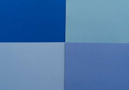 Photo of Textural Blue Paper Composition. Flat Lay Style. Background with Dark ank Light Paper Sheets for Text, Messages, Flyers.