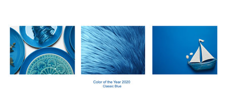 Collage made with photos inspired by color of the year 2020 (Classic blue)