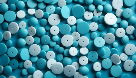 White pills on blue background