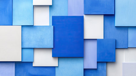 A vibrant abstract composition featuring blue and white canvases arranged in geometric patterns. Perfect for backgrounds in design or artistic projects.