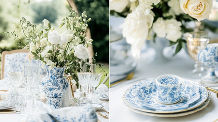A stunning collection of blue and white porcelain tableware featuring intricate floral patterns. Perfect for enhancing kitchen decor and dining experiences.