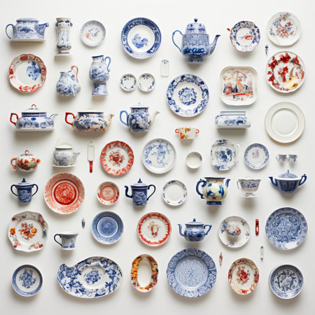 Arrange a stunning collection of antique blue and white porcelain tea set with floral designs, perfect for showcasing vintage tableware aesthetics.