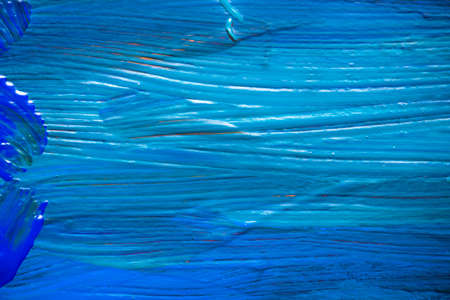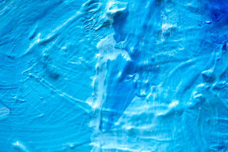 Closeup of a vibrant aquatic blue painting with fluid patterns on the wall
