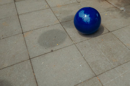 blue rubber ball on cement floor