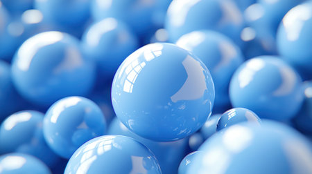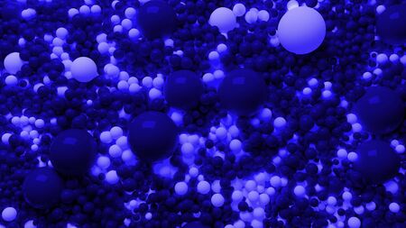 Abstract 3d rendering of blue spheres. Futuristic background with balls.