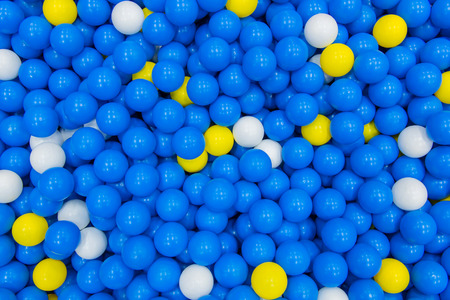 plastic balls toys colorful blue, white yellow, selective focus