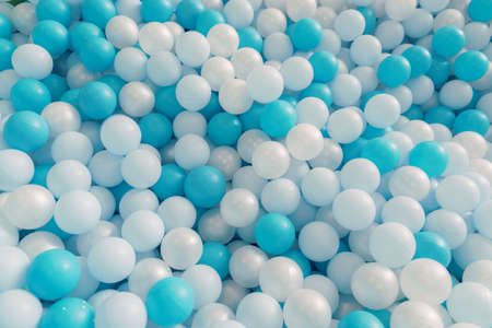 White and blue plastic balls selected for a ball pit