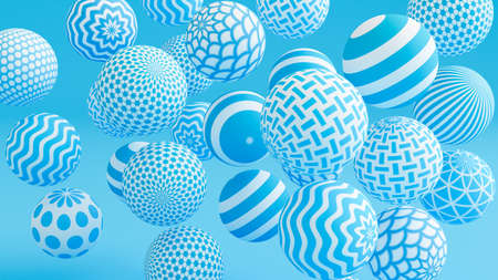 beautiful shiny blue white balls of different colors and sizes completely cover the surface. Some spheres glow. 3d photorealistic render geometric reative holiday background of shiny balls