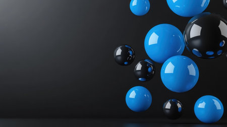 Black and blue spheres floating on dark grey background, simple shapes, minimalistic design, 3D rendering illustration, no shadows, no gradient, vector art style --chaos 30 --ar 16:9 --v 6.1 Job ID: ce18d583-90b3-41c9-bcfb-9d3fa6daf46d