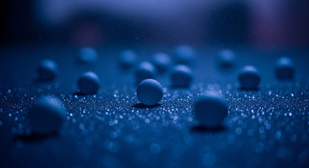 blue beads balls on black mirror background