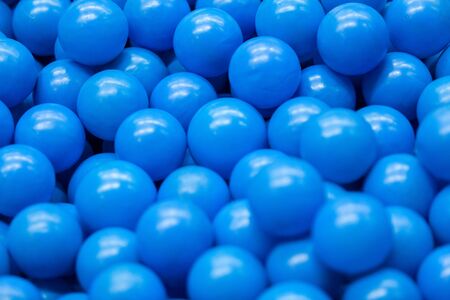 Colored plastic balls in pool of game room. Swimming pool for fun and jumping in colored plastic balls. phantom classic blue color