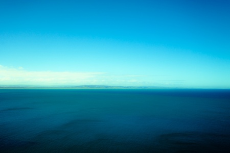 Beautiful turquoise ocean and sky. Turquoise background with large copy space.
