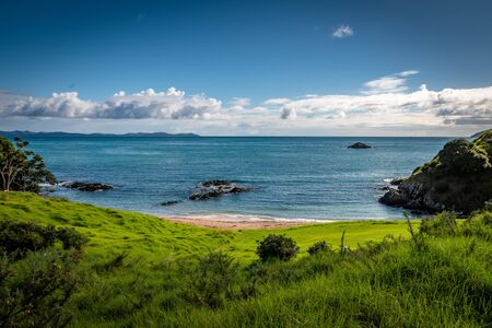 Hiking on the beautiful coast of Doubtless Bay in the Far North of New Zealand