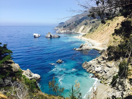 A captivating coastal view featuring turquoise waves crashing against rugged rocks, evoking a sense of serenity and natural beauty in an outdoor setting.