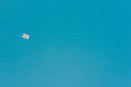 Aerial overhead drone shot of yachts on Adriatic sea near Vis Island in Croatia summer