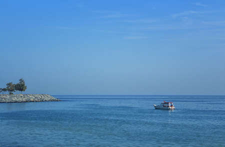 Many fishing boats on the water in the sea with beautiful clear blue sky
