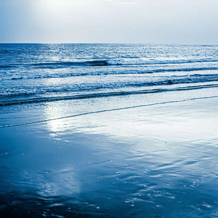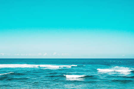View of the ocean or sea in blue in the morning. Relaxation, calmness concept. Copy space