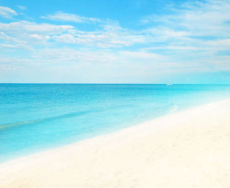 Perfect tropical beach and turquoise clear ocean water - natural background with blue sky