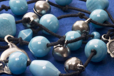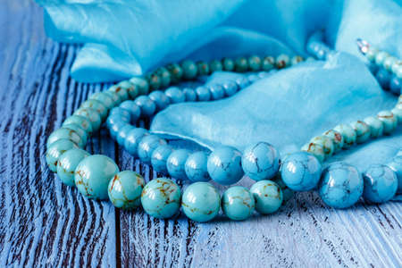 Beautiful blue beads. The concept of beautiful, elegant life and beautiful decoration for woman