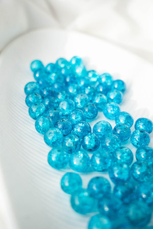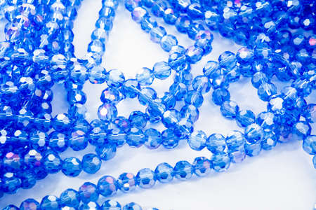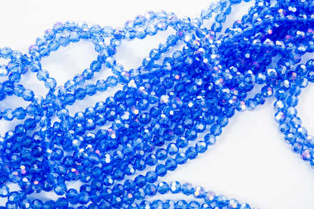 Blue round beads on a white background. beads to create jewelry and accessories. sewing accessories.