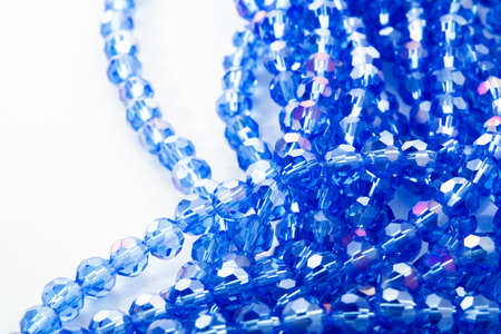 Beautiful blue Glass Sparkle Crystal Beads on white background.