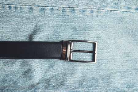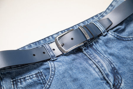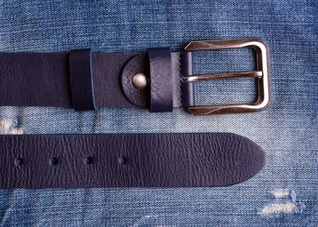 men's leather trouser belt in the background of denim, men's closet, jeans