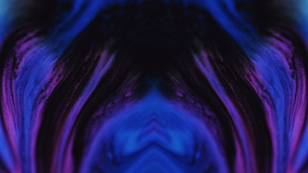 Glitter mix. Ink emulsion. Blur blue pink purple color shimmering water chemical texture spreading on abstract dark black background.