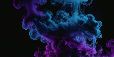 AI Generated. Multicolored thick smoke, blue and purple neon on a black background