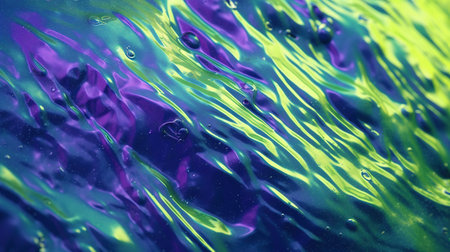 A wavy iridescent surface with smooth lines in green, blue, and purple hues. Clear details and vibrant colors ...