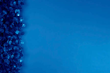 Blue grass on blue background. Starweed plants. Creative Tinting. Trend color classic blue. Color of 2020. Good blue leaves. Texture. Grass
