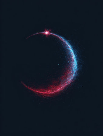 Indigo crescent moon against dark sky, nighttime serenity and mystery
