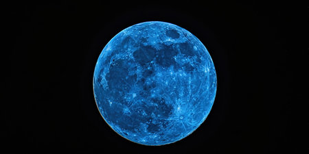 Blue moon in the night sky. 3D illustration. Space background.