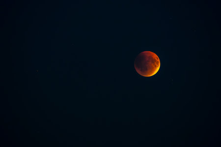 A blood moon against a dark night sky, showcasing a lunar eclipse.