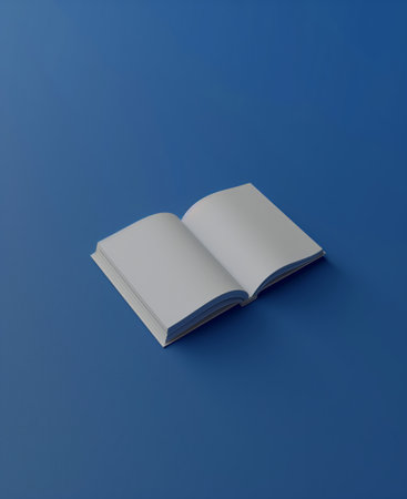Blank white book mockup. The cover of a book is white on a blue background empty book. Generated by artificial intelligence.