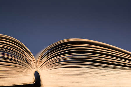Closeup of open book standing up
