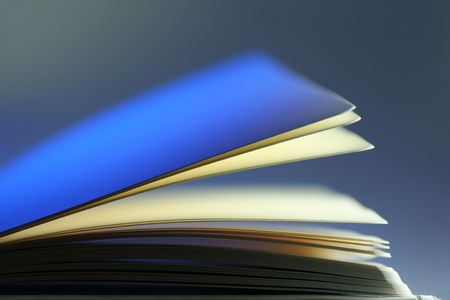 Blue toned macro closeup of an open book, education and studies