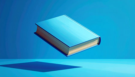 Hardcover book on blue background
