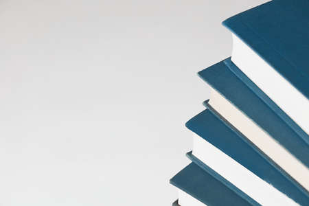 Close-up side view of stack of book on the white background