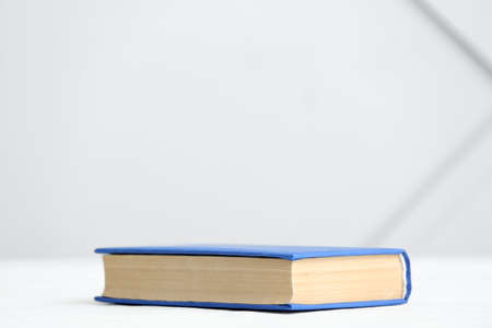 Book on light background, top view