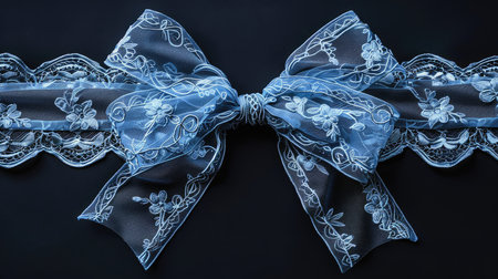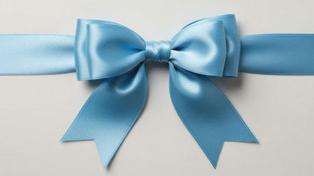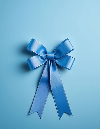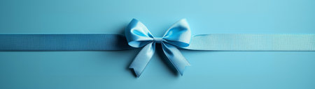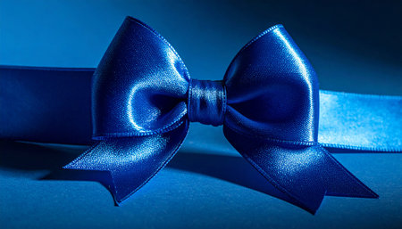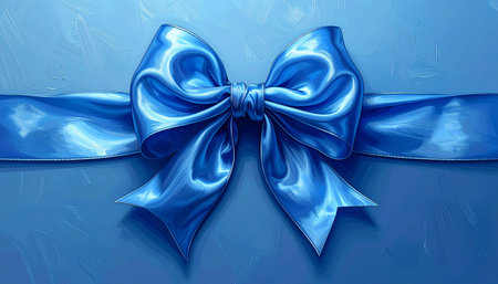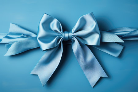 Blue ribbon and bow on a blue background, created with Generative AI technology