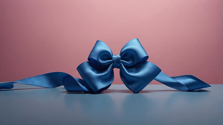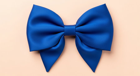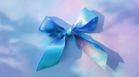 A stunning blue satin bow rests on a soft pastel background, making it perfect for gift wrapping, celebrations, or crafting projects with an elegant touch.