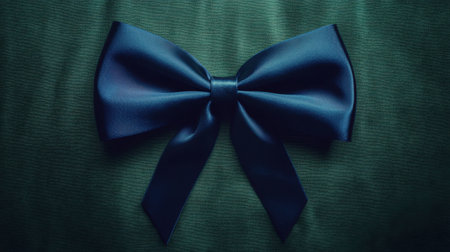 This image features an elegant dark blue satin bow positioned on a textured background, ideal for use in gift wrapping and stylish design projects.