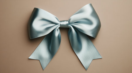 A beautiful blue satin bow rests gracefully on a soft neutral background, ideal for gift wrapping and decorative purposes, embodying elegance and style.