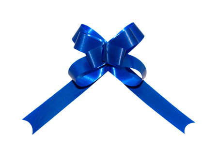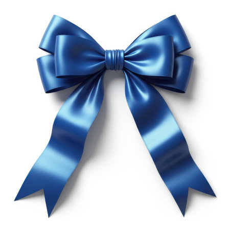 A beautifully crafted blue ribbon bow sits elegantly on a plain white background, symbolizing celebration and gift-giving.