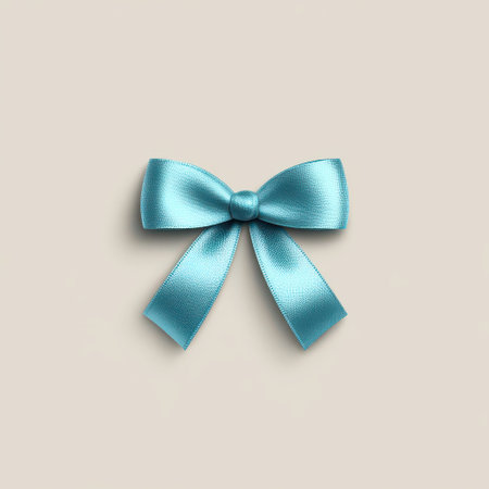 Elegant turquoise satin bow with smooth texture adorning a soft beige background, perfect for festive occasions and decorative uses in various designs