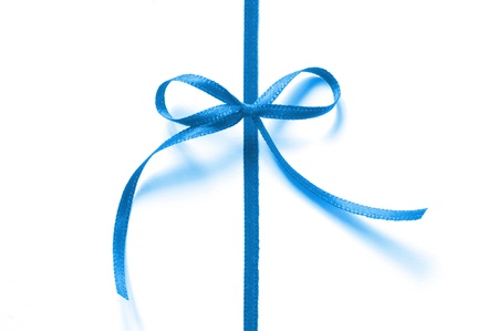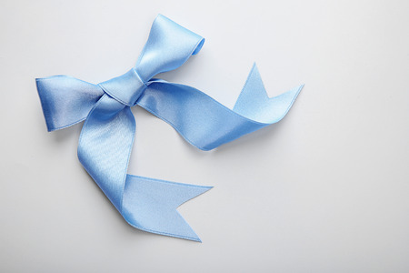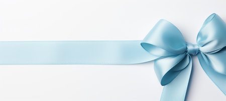 Blue ribbon bow on white background with copy space, perfect for birthday or christmas banner
