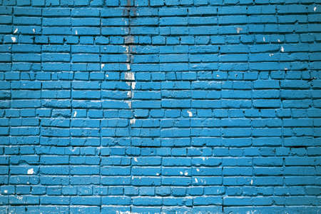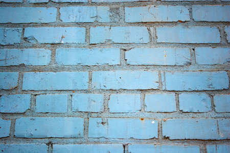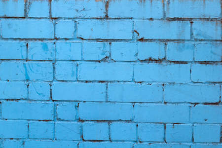 Old brick wall covered with blue paint. Background. Texture.