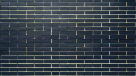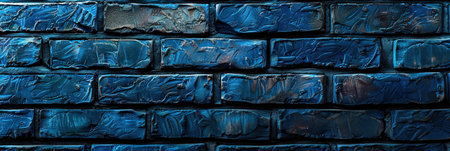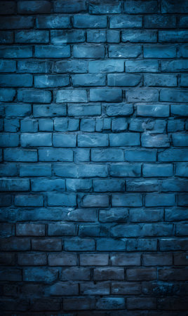 Evokes a modern aesthetic with a wall of dark blue painted bricks that are arranged perfectly. A dramatic spotlight is cast from above and highlights the texture.